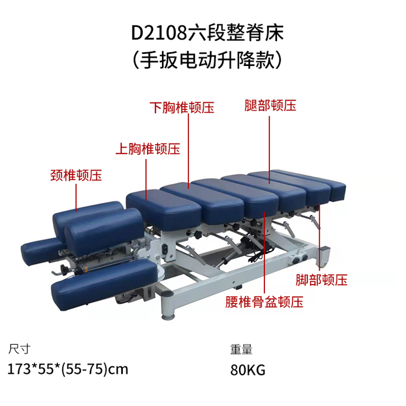 D2108六段整脊床(手扳電動升降款)